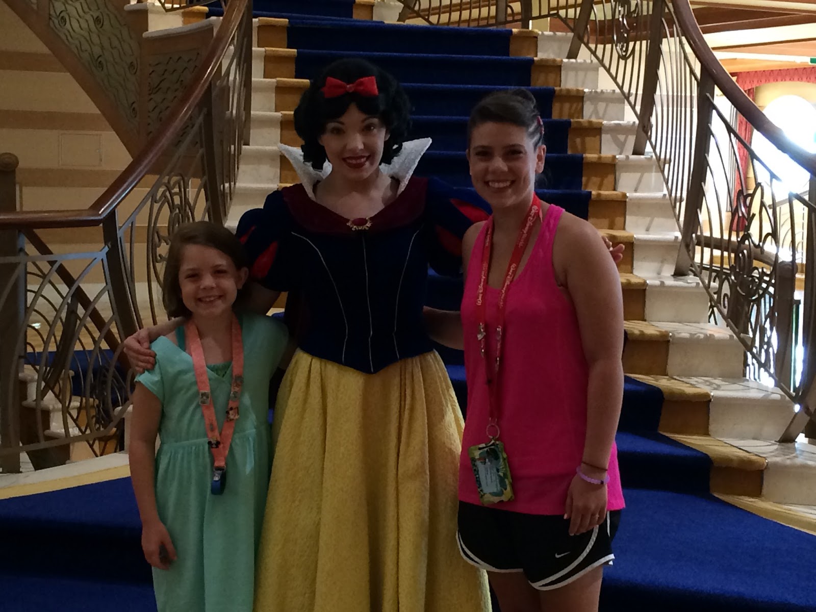The Princesses that we got to see were Cinderella, Belle, Rapunzel, and Snow White. Unfortunately, it was the same Belle, and she was still not a good Belle. Fortunately, it was the same Rapunzel, and she was still a great Rapunzel. She asked the Youngest Princess what her plans were for the day, and the Youngest Princess told her that we were going to snorkel. Rapunzel replied, "Oh! That is wonderful! You know, Pascal really wants to go snorkeling, but we haven't quite figured that out yet. His face is just too small!" So cute!! Because we were all together in line, we asked if we could have a group picture made with Snow White, who was the last princess in the line. They told us we could, so we did. I am glad it worked out where we could.